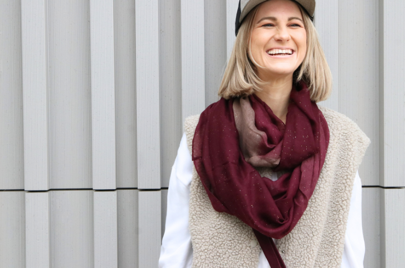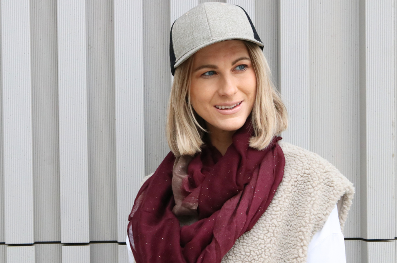 Ob du ihn zu einem eleganten Mantel oder zu einer Jeans-und-Sneaker-Kombi trägst: Der Glitzer sorgt für feminine Raffinesse, ohne überladen zu wirken. Besonders schön ist der Loop als Kontrast zum sportlichen Cap – das Zusammenspiel aus Casual und Chic macht den Look spannend und modern.