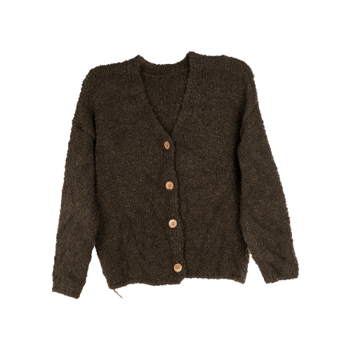 Der Teddyplüsch-Cardigan ist nicht nur superweich, sondern auch unglaublich vielseitig. Locker geschnitten und mit einem leichten Oversize-Touch, bietet er genug Platz für Layering, ohne dass der Look an Form verliert. Die Khaki-Farbe sorgt für einen modernen, natürlichen Ton, der perfekt zu Winterfarben wie Beige, Braun und Creme passt. Ob über einem feinen Rollkragenpullover oder über einem T-Shirt für milde Tage – der Cardigan ist ein echter Allrounder.