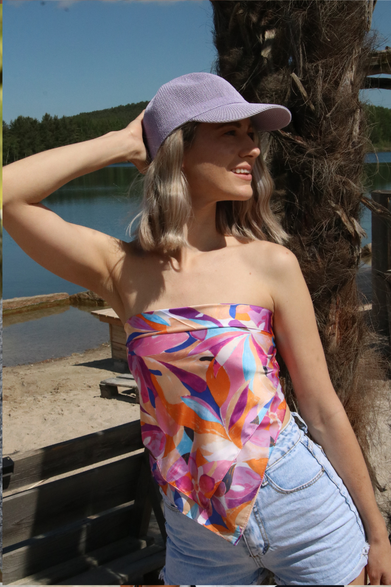 Der Sommertrend schlechthin! Ein großes quadratisches Tuch lässt sich im Handumdrehen zum Bandeau- oder Neckholder-Top binden. Kombiniert mit einer High-Waist-Jeans oder einem Maxirock entsteht ein Look, der nach Urlaub in Saint-Tropez schreit.